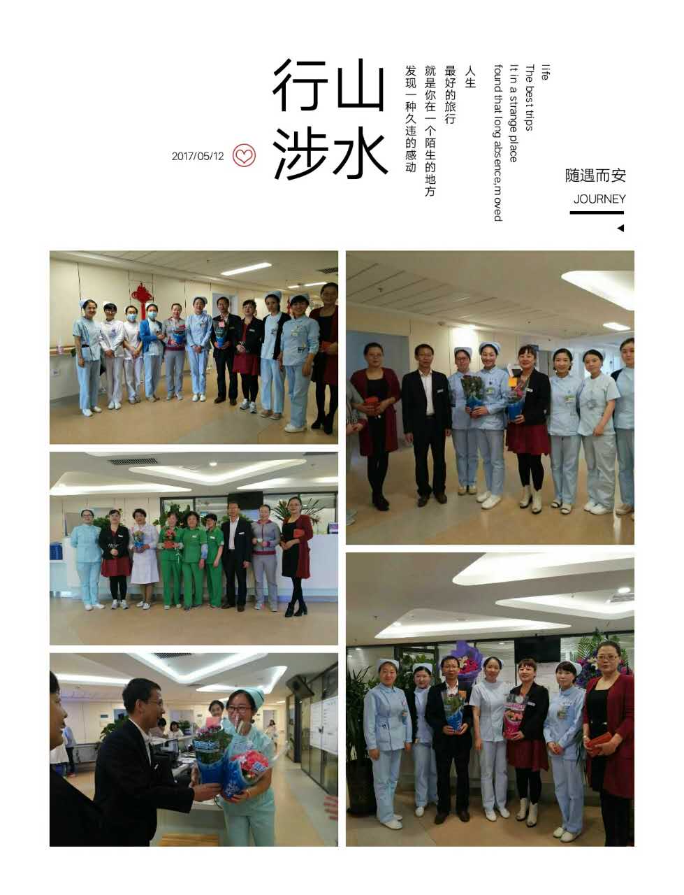 為了慶祝5·12國(guó)際護(hù)士節(jié),感謝醫(yī)院護(hù)士們辛勤、努力的工作,城關(guān)物業(yè)第四分公司向所服務(wù)的陸軍總院、蘭大一院、蘭大二院、三愛堂醫(yī)院、肺科醫(yī)院五個(gè)醫(yī)院項(xiàng)目的護(hù)士們送去了節(jié)日問(wèn)候與精美的禮物,用行動(dòng)詮釋了對(duì)白衣天使們的關(guān)愛之心,用行動(dòng)傳遞了由衷地感激之情!