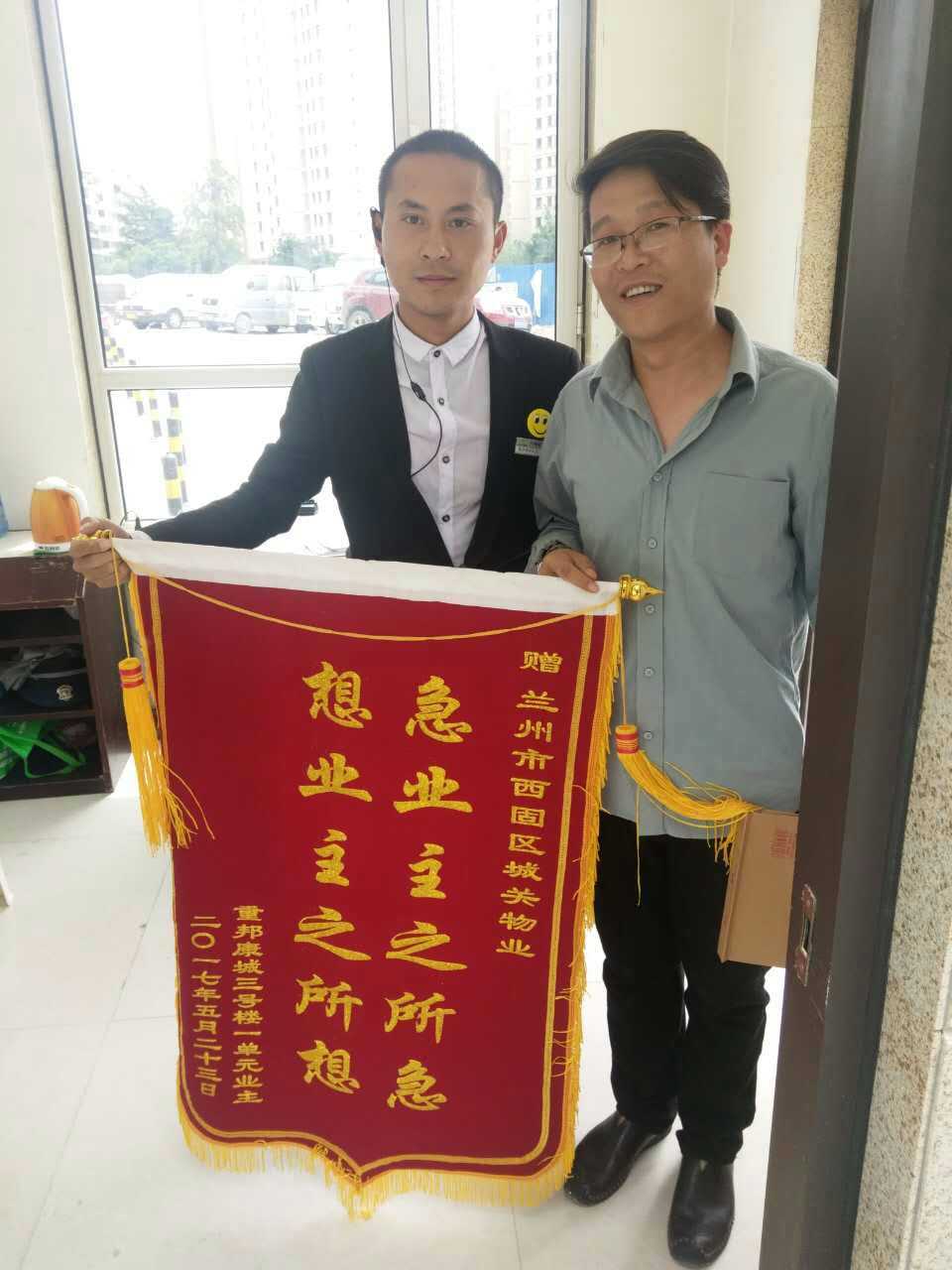 5月24日上午11點左右,重邦康城小區(qū)一戶業(yè)主將一副題為“急業(yè)主之所急,想業(yè)主之所想”的錦旗送到了物業(yè)辦公室,感謝物業(yè)人員在干好本質(zhì)工作的同時,積極熱心的幫忙尋找自家的小狗。該業(yè)主強調(diào),自從入住這個小區(qū)以來,每一天都過的很舒心,城關(guān)物業(yè)工作人員專業(yè)素質(zhì)強,服務(wù)熱情周到。在得知小狗丟了的情況下,積極主動的安排人員幫忙尋找,并最終找到小狗。感謝城關(guān)物業(yè)提供如此優(yōu)質(zhì)、貼心、專業(yè)的服務(wù)。田曉晨經(jīng)理說道,業(yè)主的事不論大小,只要有需要,我們定會全力以赴。