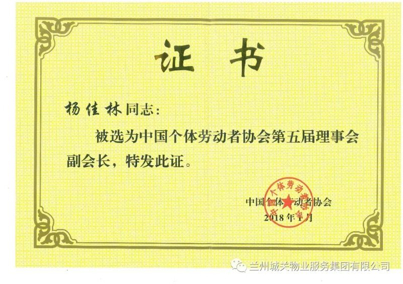 城關(guān)物業(yè)集團(tuán)CEO楊佳林當(dāng)選中國個體勞動者協(xié)會第五屆理事會副會長