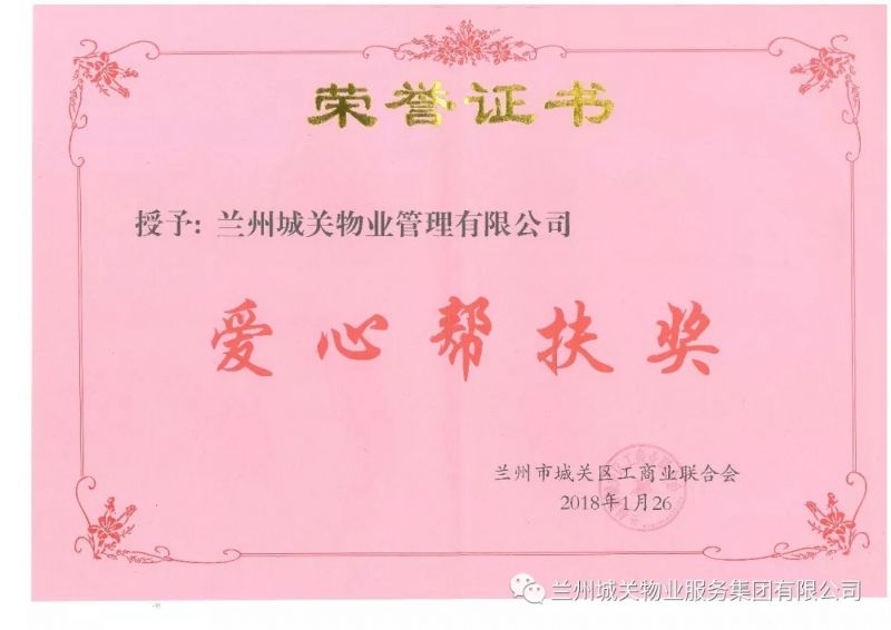 1月26日,城關(guān)區(qū)工商業(yè)聯(lián)合會第十三屆二次執(zhí)委會議在蘭召開。會議書面?zhèn)鬟_(dá)了十九大及全聯(lián)十二大會議精神,審議通過了城關(guān)區(qū)工商聯(lián)十三屆一次執(zhí)委會工作報(bào)告及有關(guān)人事調(diào)整事項(xiàng),并表彰了2017年度優(yōu)秀會員及愛心企業(yè)。蘭州城關(guān)物業(yè)服務(wù)集團(tuán)榮獲“愛心幫扶獎”,蘭州城關(guān)物業(yè)服務(wù)集團(tuán)CEO楊佳林榮獲“突出貢獻(xiàn)獎”。