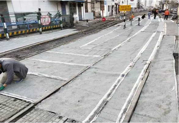 鐵路沿線改造后路面鋪設(shè)了毛氈