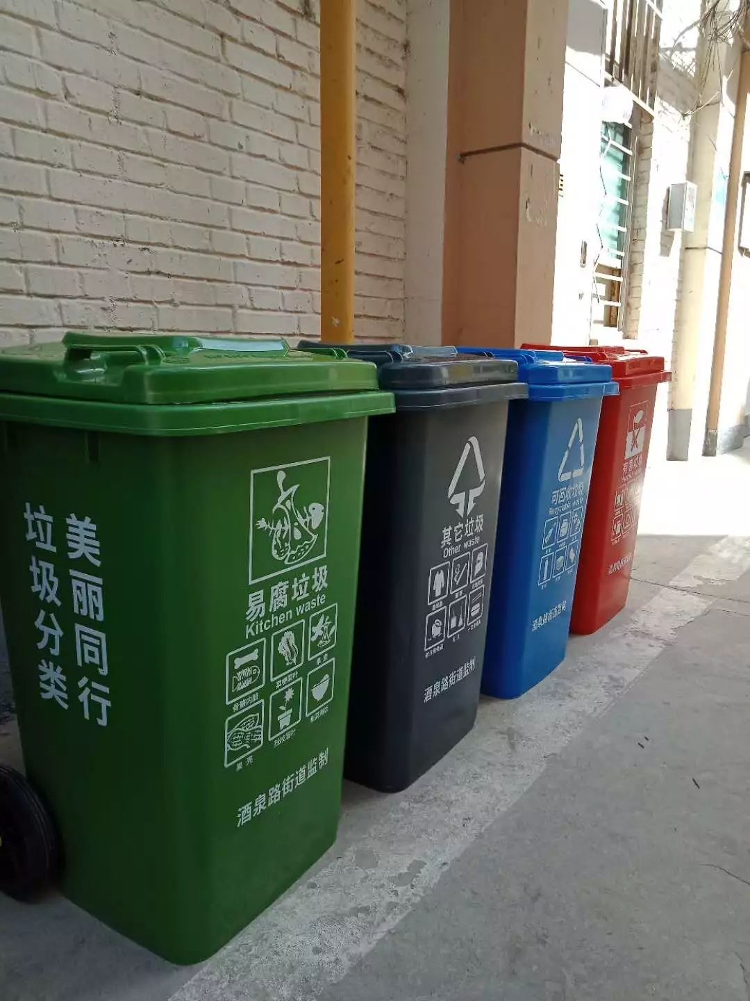▲整齊有序的分類垃圾桶