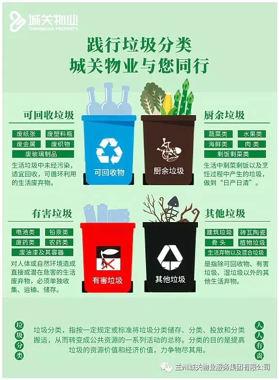 為有效推進(jìn)城關(guān)物業(yè)所轄小區(qū)垃圾分類工作的有序開展,先后在各小區(qū)購置新型四色分類垃圾桶(包括可回收物、易腐垃圾、有害垃圾和其他垃圾),配備垃圾棚,集中打造生活垃圾分類投放點(diǎn),方便業(yè)主更好地分類投放。