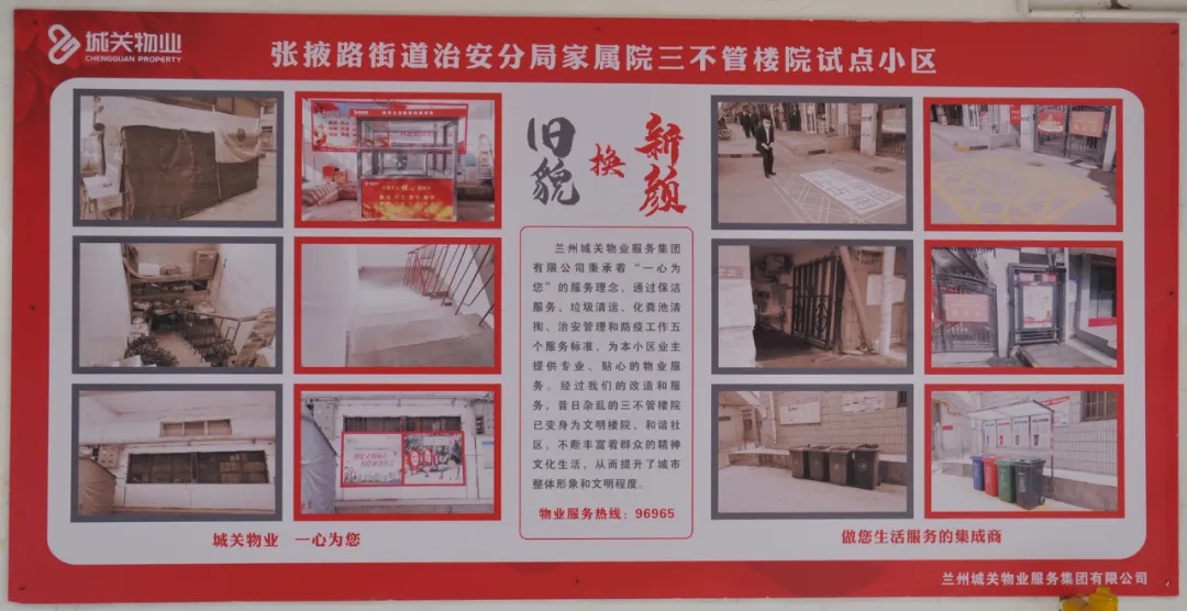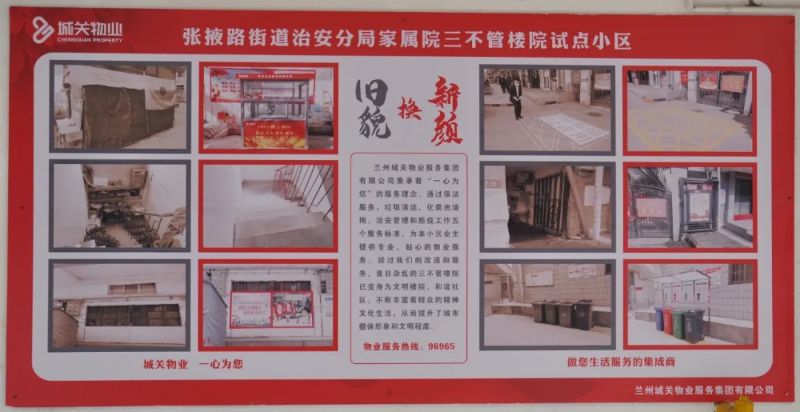 蘭州城關(guān)物業(yè)服務(wù)集團(tuán)有限公司自今年全面接管城關(guān)區(qū)老舊樓院以來,我們對(duì)老舊樓院進(jìn)行了大面積的改造,改善老舊樓院小區(qū)居民居住環(huán)境,實(shí)現(xiàn)了“三不管”樓院的華麗轉(zhuǎn)身。與此同時(shí),我們也引入了利民、便民、惠民的多元化服務(wù),讓業(yè)主們享受更優(yōu)質(zhì)、更便利的全方位服務(wù)。