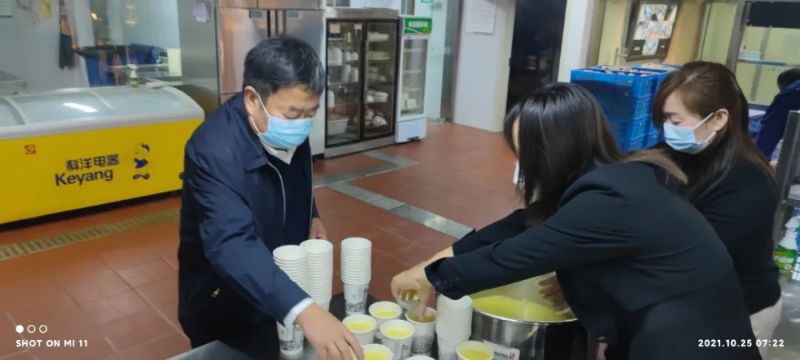 為了確保餐飲能夠及時(shí)送達(dá)各防疫點(diǎn),城關(guān)物業(yè)董事長(zhǎng)楊民召從早上5:30開始就帶領(lǐng)大家在配餐間忙碌起來。他一邊配餐,一邊不停地看時(shí)間,只為確保防疫一線的工作人員吃上熱乎可口的飯菜。他說到,“我們的愛心餐要一直送下去,絕對(duì)不能讓辛苦在防疫一線的工作人員在吃飯上有后顧之憂。”